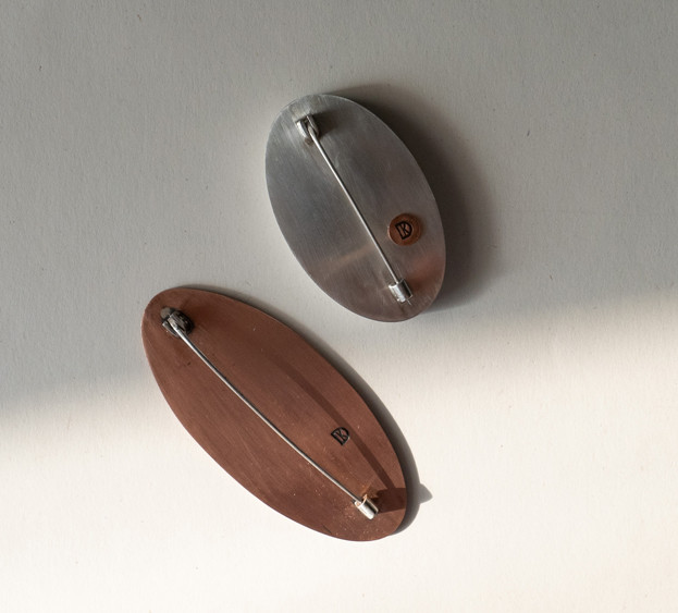 Dimensions: Brosch 1: 72mm * 32mm * 1.5mm; Brosch 2: 51mm * 32mm * 6mm